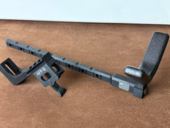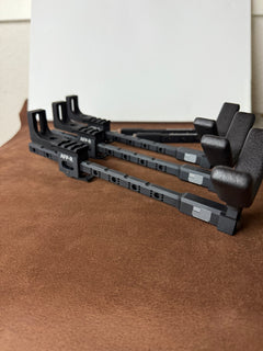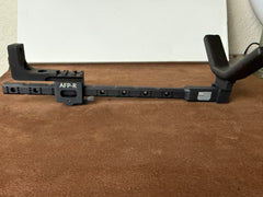 The AFP-R Series is fully adjustable in length from 6"-12" with all new cradle and locking cam-lock system. With an improved center of gravity below the riser stabilizer port, the AFP-R allows the bar to slide through the cradle and passthrough the riser for accurate adjustments in 1" increments. The new Mule Saddle has been machined to reduce weight with a 1/2" wide body and ported to add additional weights below. The L-bracket has also been machined with a picatinny rail to add your favorite lights or cameras.